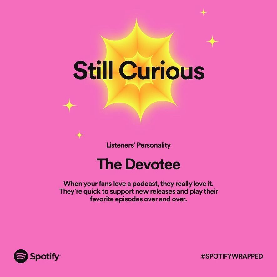 In that spirit, I thought I'd share what Spotify Wrapped had to say about the Still Curious podcast this year.