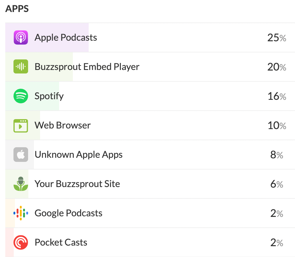 Here's the Top 8 ways to listen, which account for around 90% of listeners.