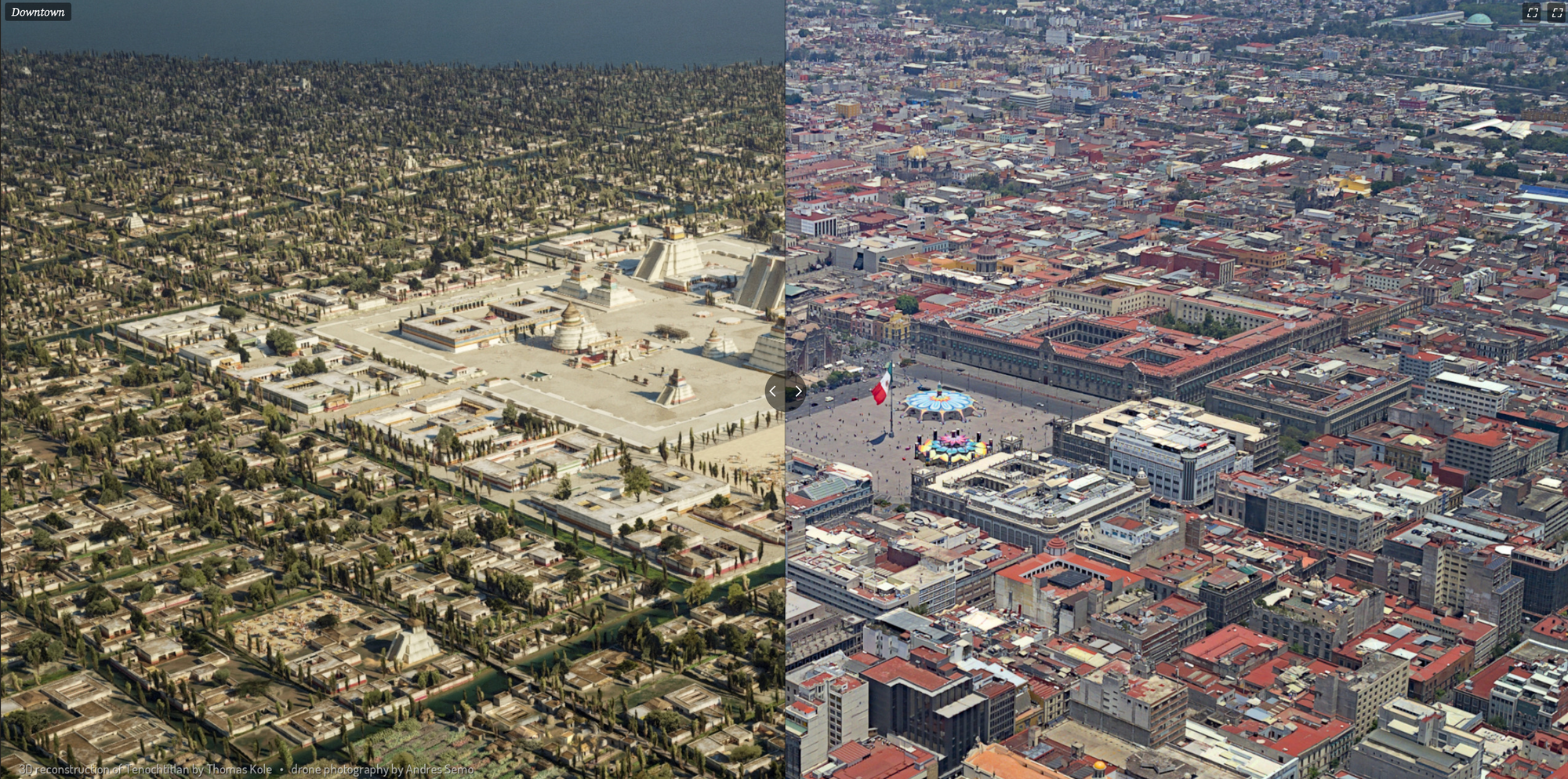 Tenochtitlan was once the largest city in the Americas and capital of the Aztec Empire until its conquest by the Spanish in the 1500s. Modern day Mexico City is built on top of the ruins of Tenochtitlan, using stone repurposed from temples demolished after the city's capture. Thomas Kole has combined drone photography with historical and archeological expertise to create a compelling 3D reconstructed portrait of Tenochtitlan as it would have been in 1518, at the height of its power.