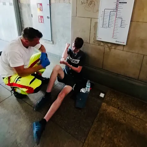 I rushed back to the hostel for our passports, to send images of them to Sara for the police. While I rushed across town to Alexanderplatz, paramedics were tending to Harrison. Cuts marked his hands, shoulder, head, and neck; his elbows were grazed and swelling. There was still glass in his head, but the bleeding had been cleaned away. Some big, muscular guys came over to apologise for not helping him, they admitted they had hidden in fear. Others had called the police from behind the safety of glass doors. This, I thought grimly, is the world we live in now?