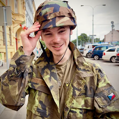 We carried on wandering through the surrounding streets, hoping to see something for Harrison to spend his birthday money on, and then there it was, Harrison’s perfect gift, a set of Russian dolls, painted as our local English football team, Hull City. Then just before leaving, we stumbled on a military surplus store down a quiet side street. Inside, we found treasures: a 1990s German combat jacket, a British helmet, and a Czech camo jacket. Harrison was thrilled. The lot cost me less than his birthday pizza.